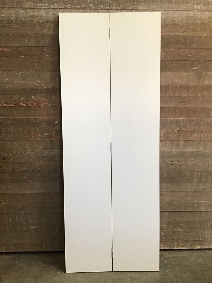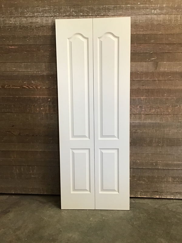 New, never installed 30" hollow core bi-fold door with four faux raised panels. This door is primed and ready to paint the color of your choice. There may be some minor cosmetic damage. Does not come with track or hardware.