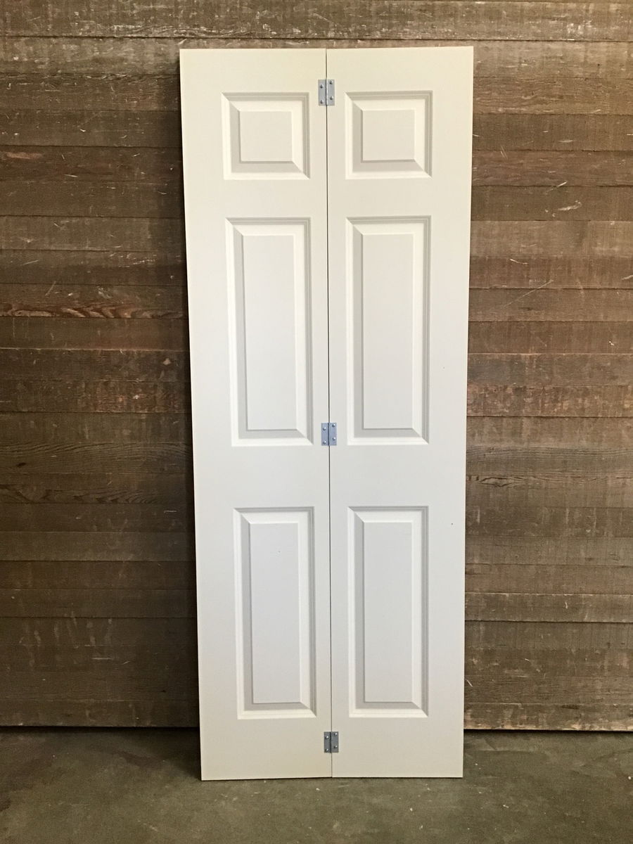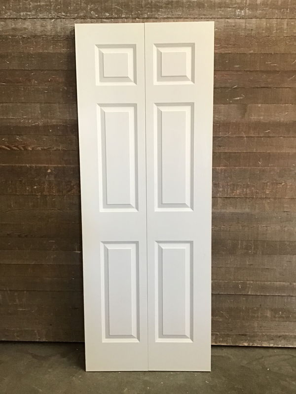 New, never installed 30" hollow core bi-fold door with six faux raised panels. This door is primed and ready to paint the color of your choice. There may be some minor cosmetic damage. Does not come with track or hardware.