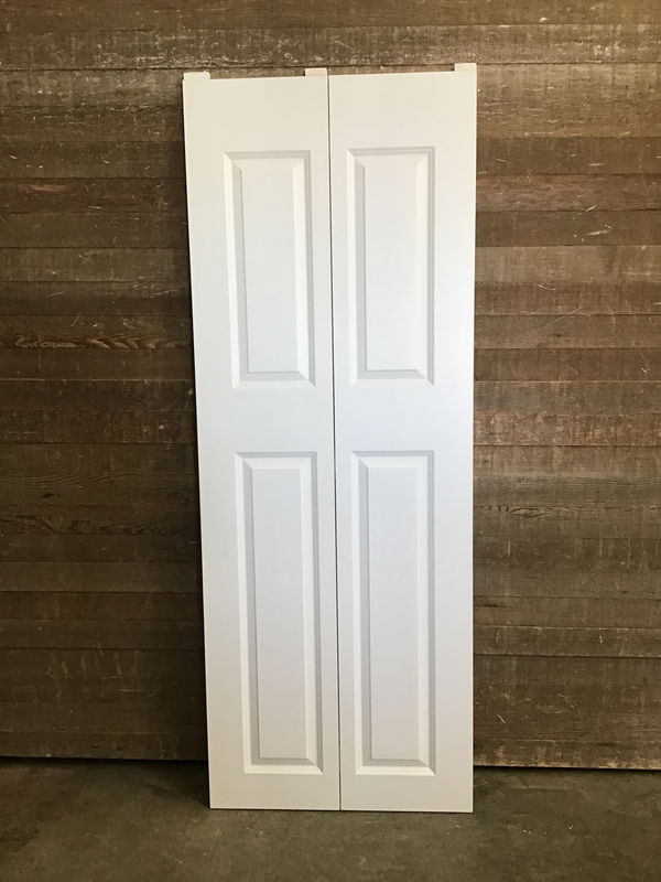 New, never installed 30" hollow core bi-fold door with four faux raised panels. This door is primed and ready to paint the color of your choice. There may be some minor cosmetic damage. Does not come with track or hardware.