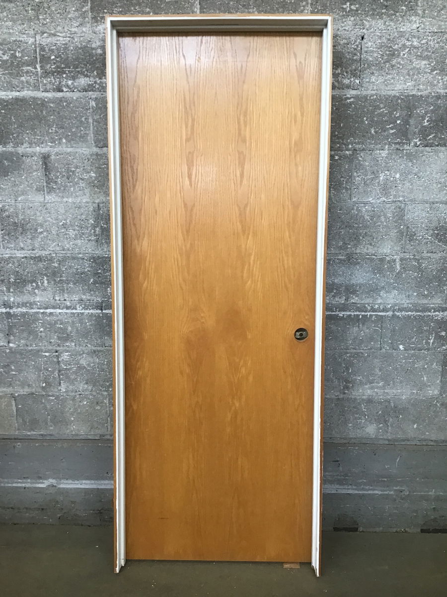 A good hollow core interior door with a nice stained veneer and pre hung in a painted white jamb. This plug in door is ready to get bonked into your doorless bedroom!