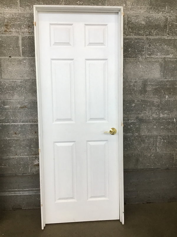 30" Hollow Core Panelled Door LH swing with 6 faux panels and a faux oak skin. Has bright brass hardware.