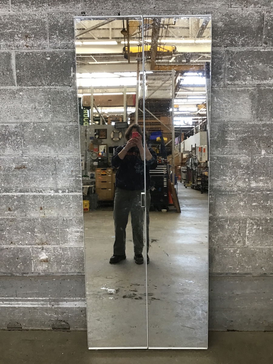Mirrored bi-fold closet door in good shape with no chips around the edges.