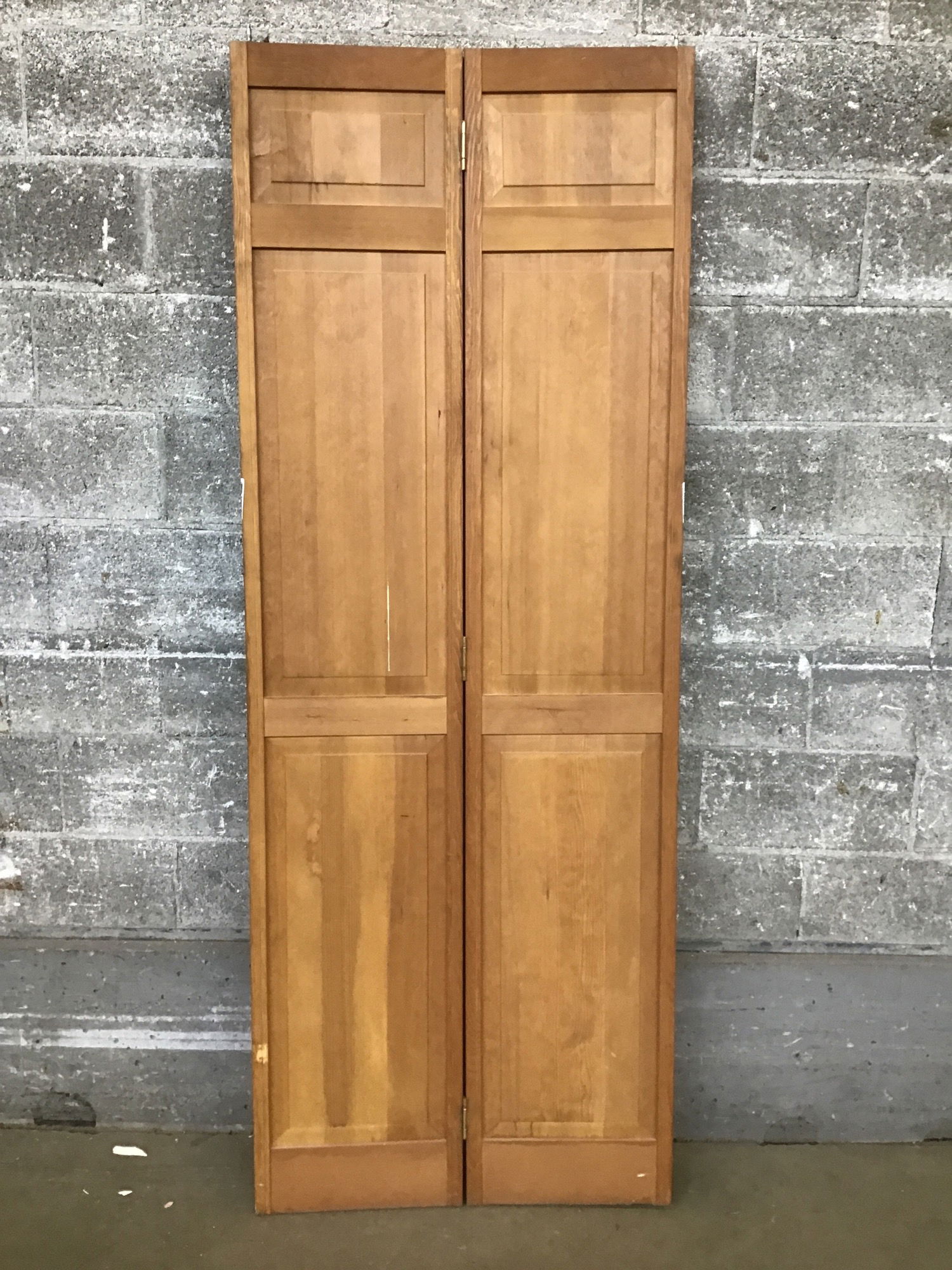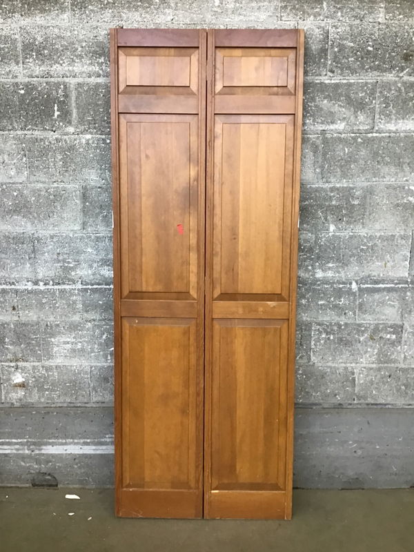 VG fir raised panel bi-fold door, it is a bit distressed cosmetically but bones are good.