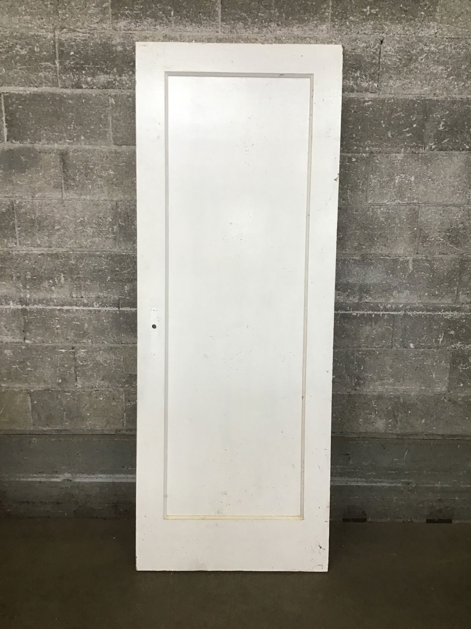 A vintage single beveled panel interior door with a painted white finish. This door would make for a good bedroom door for a vintage home.