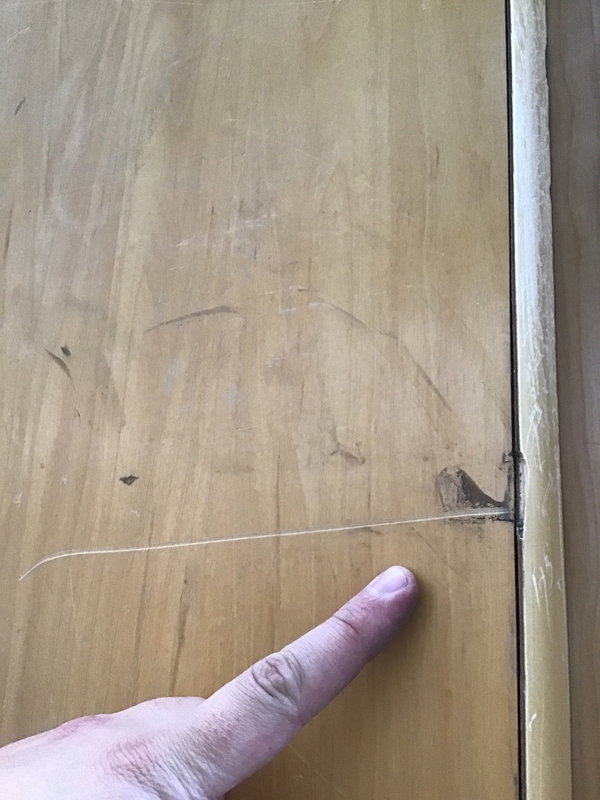 Commercial heavy duty solid core door with a beautiful birch veneer. Was previously installed as a barn door, so has no knob hole or hinge cuts. Exterior thickness, but should be used inside. Has some cosmetic damage and has been cut down on one side, price reflects. Photo may be representational.