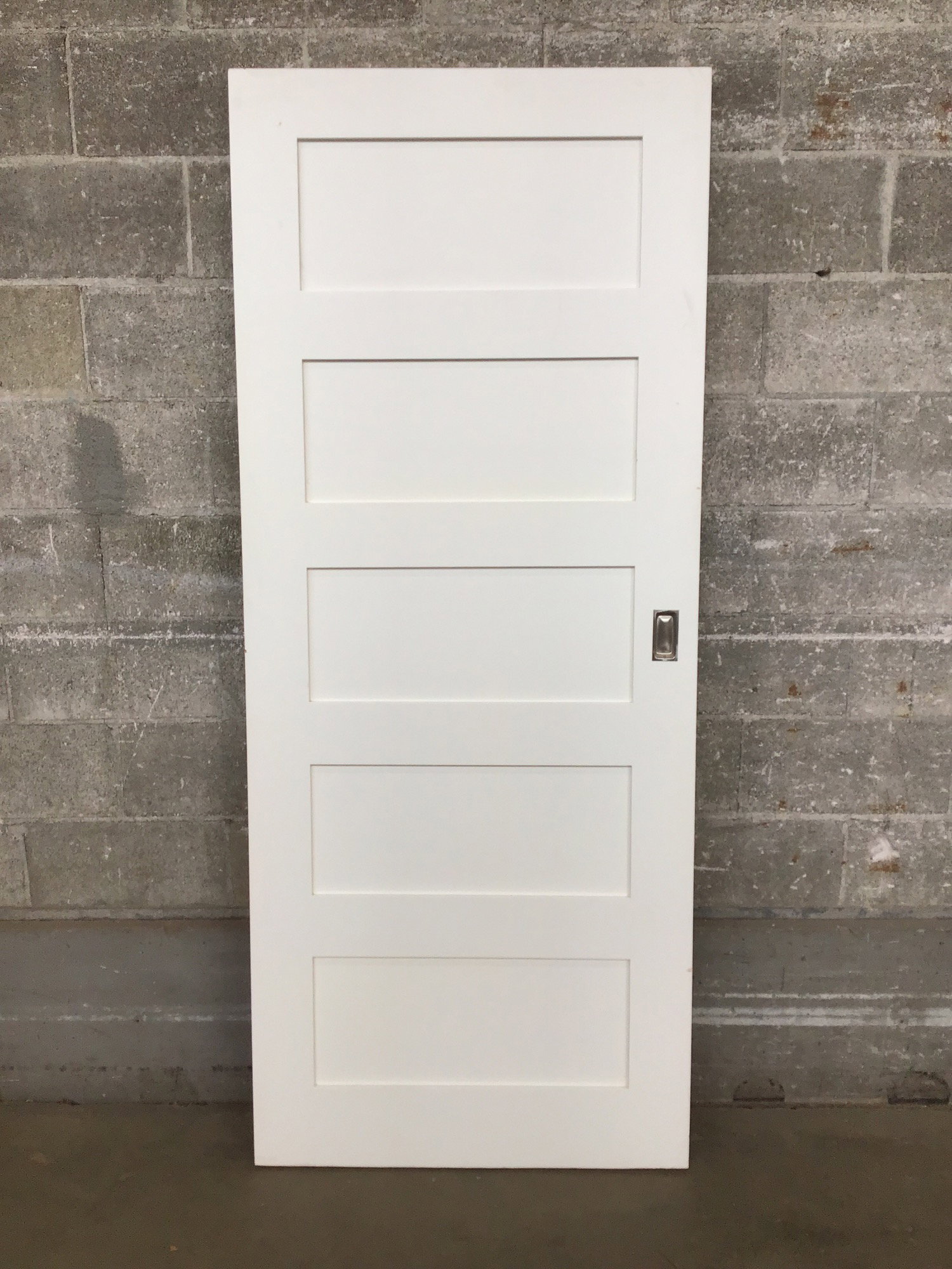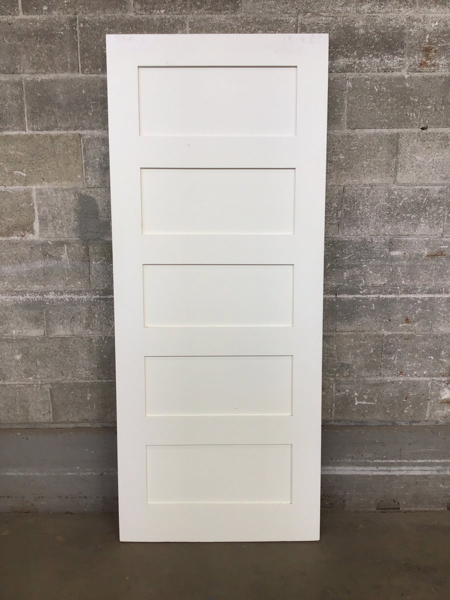 Undrilled for hinges, but has bypass handle insert, Shaker style five panel door that's been cleanly painted.