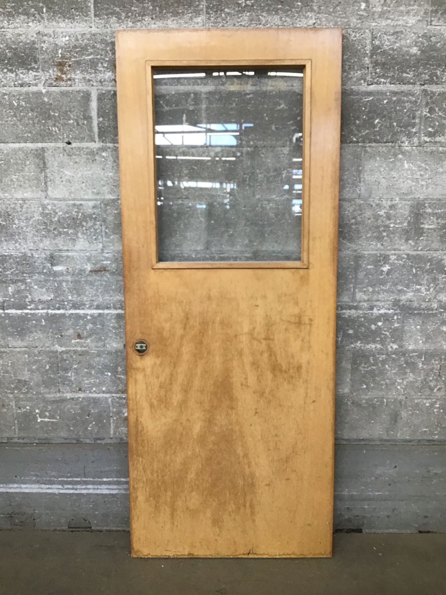 This hollow core interior door features a half lite of glass near the top and plenty of vintage charm. This would make a great pantry or laundry room door.