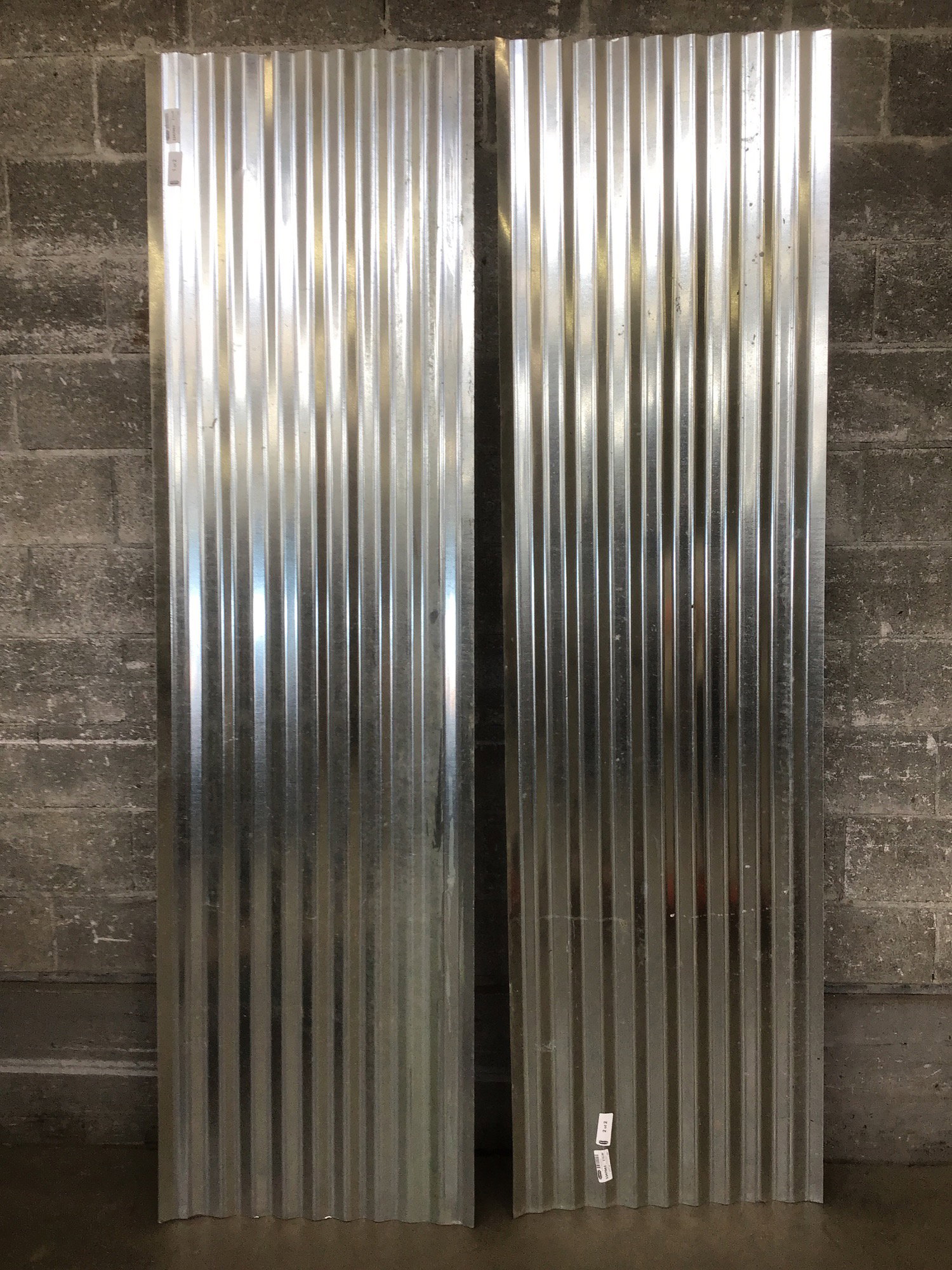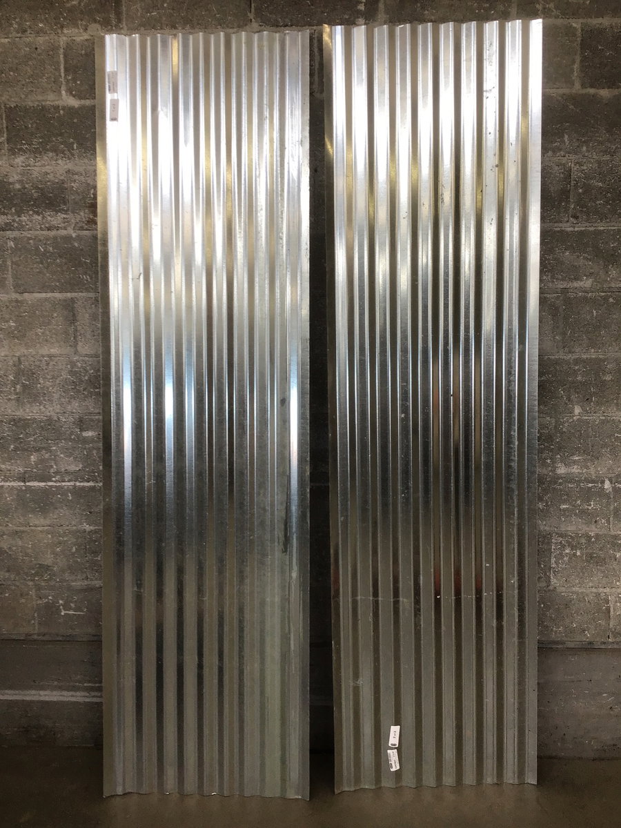 Two sheets of galvanized steel roofing