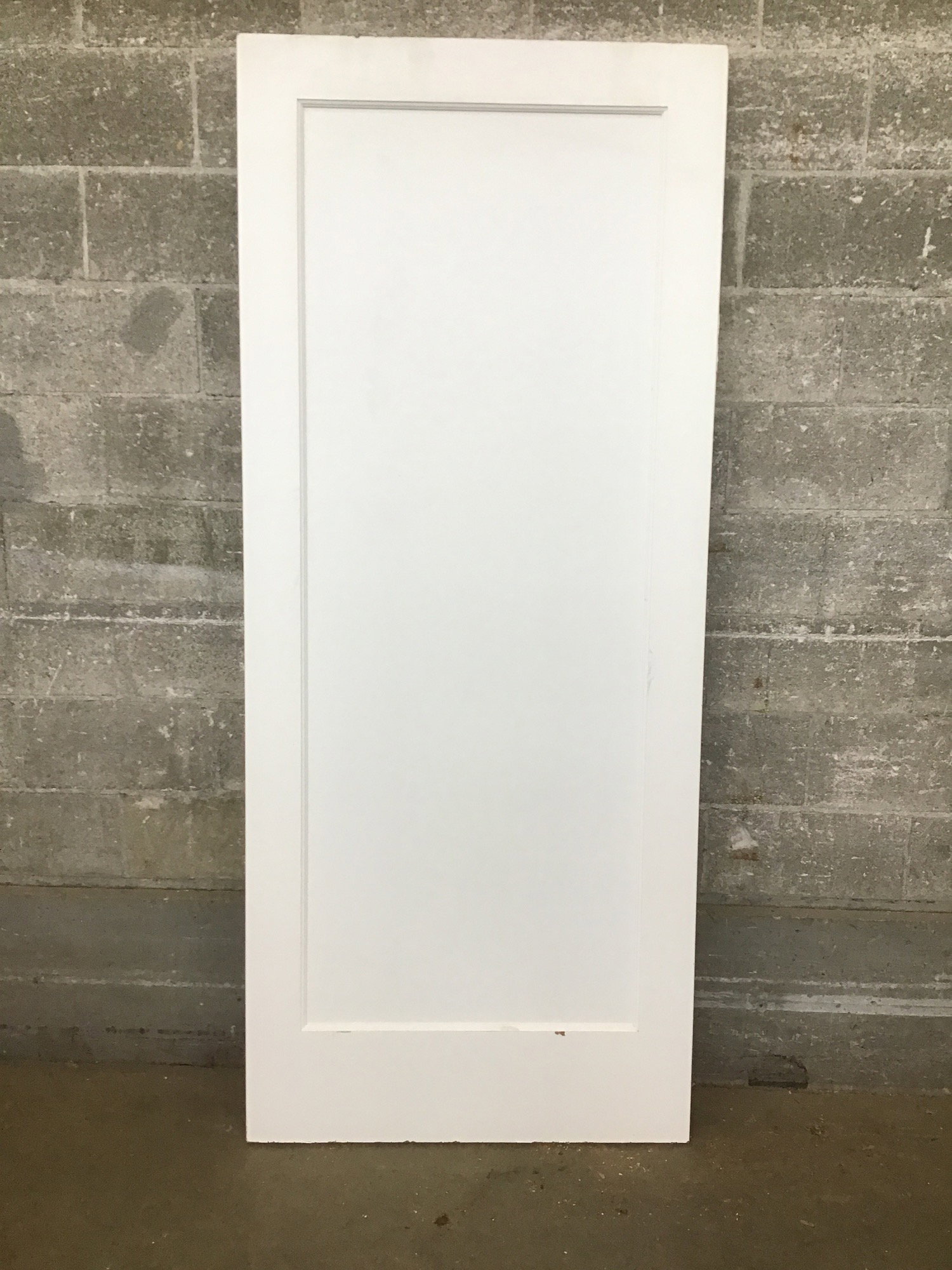 A seemingly never-before-installed single panel door that's so new it hasn't even had any hinge cuts made yet.
