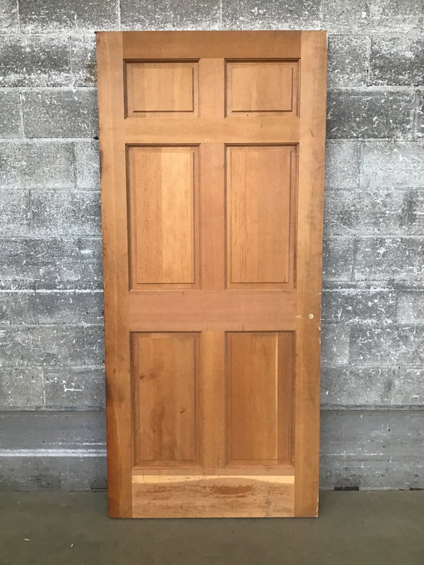 Solid fir (no veneer!) six-panel exterior door, uncut, undrilled and ready for your project. Does bear some evidence of previous bug activity at the very top rails but that appears dormant and has not affected the structure of the door.