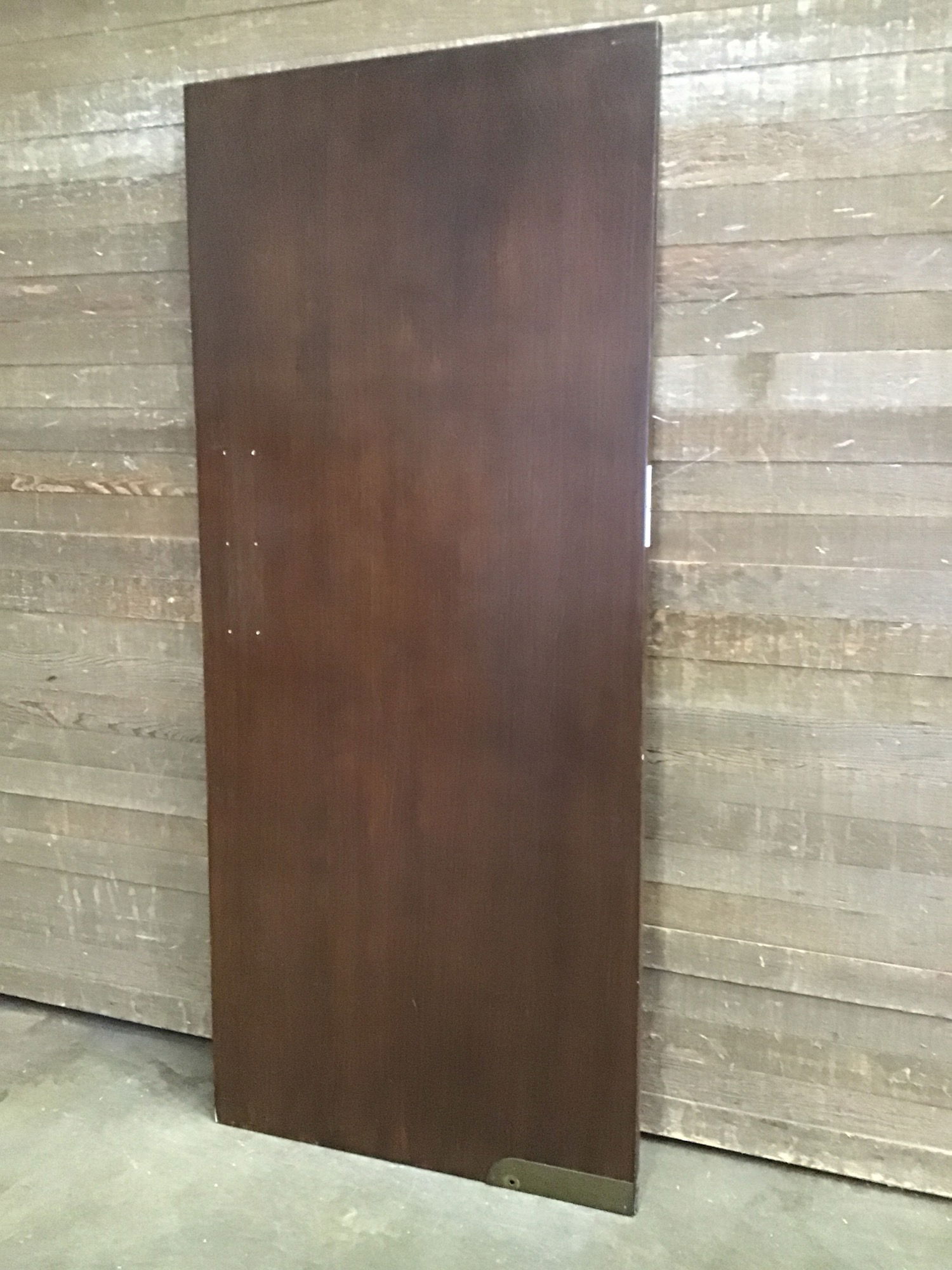 36" hollow core interior butler door with a stained veneer. No hinge cuts. Comes with butler door hardware in back upon purchase, though does not include push plates. May have some minor cosmetic damage.