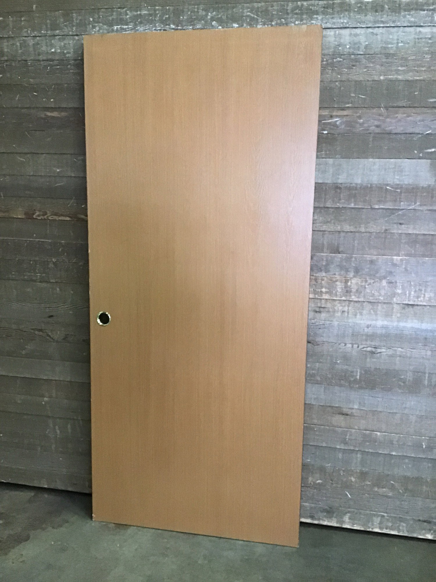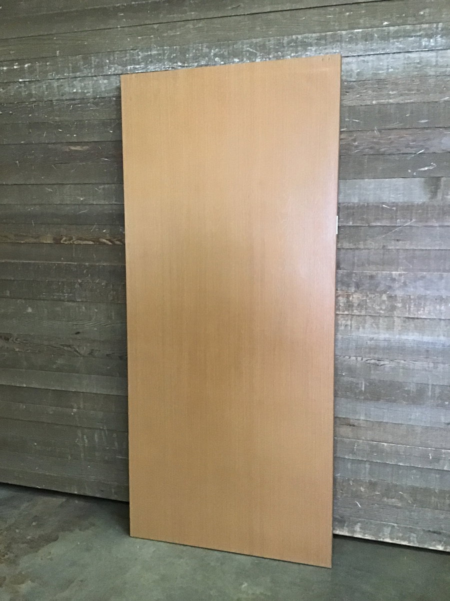Previously installed, 36" hollow core interior door with oak veneer. Was a pocket door in its past life. In overall good condition!