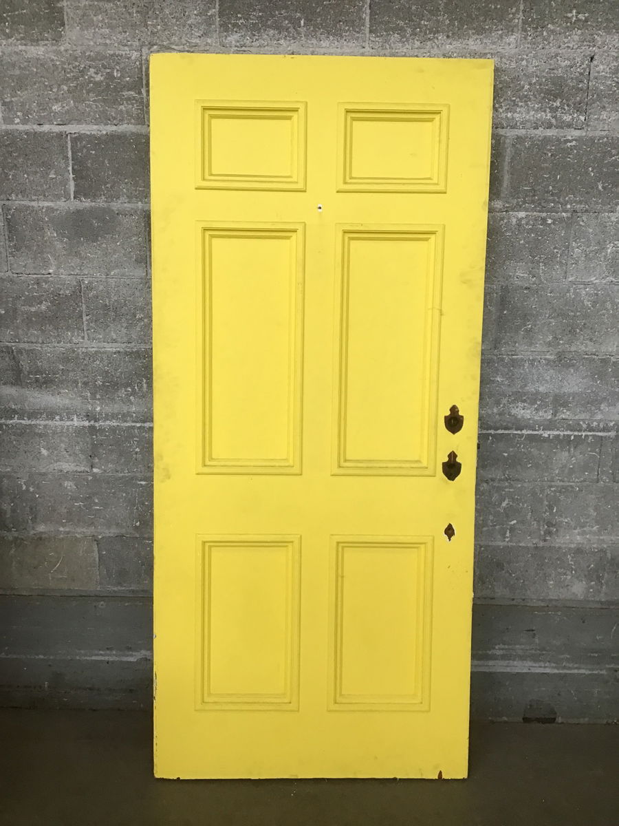 36″ Vintage Yellow Wood Panel Exterior Door