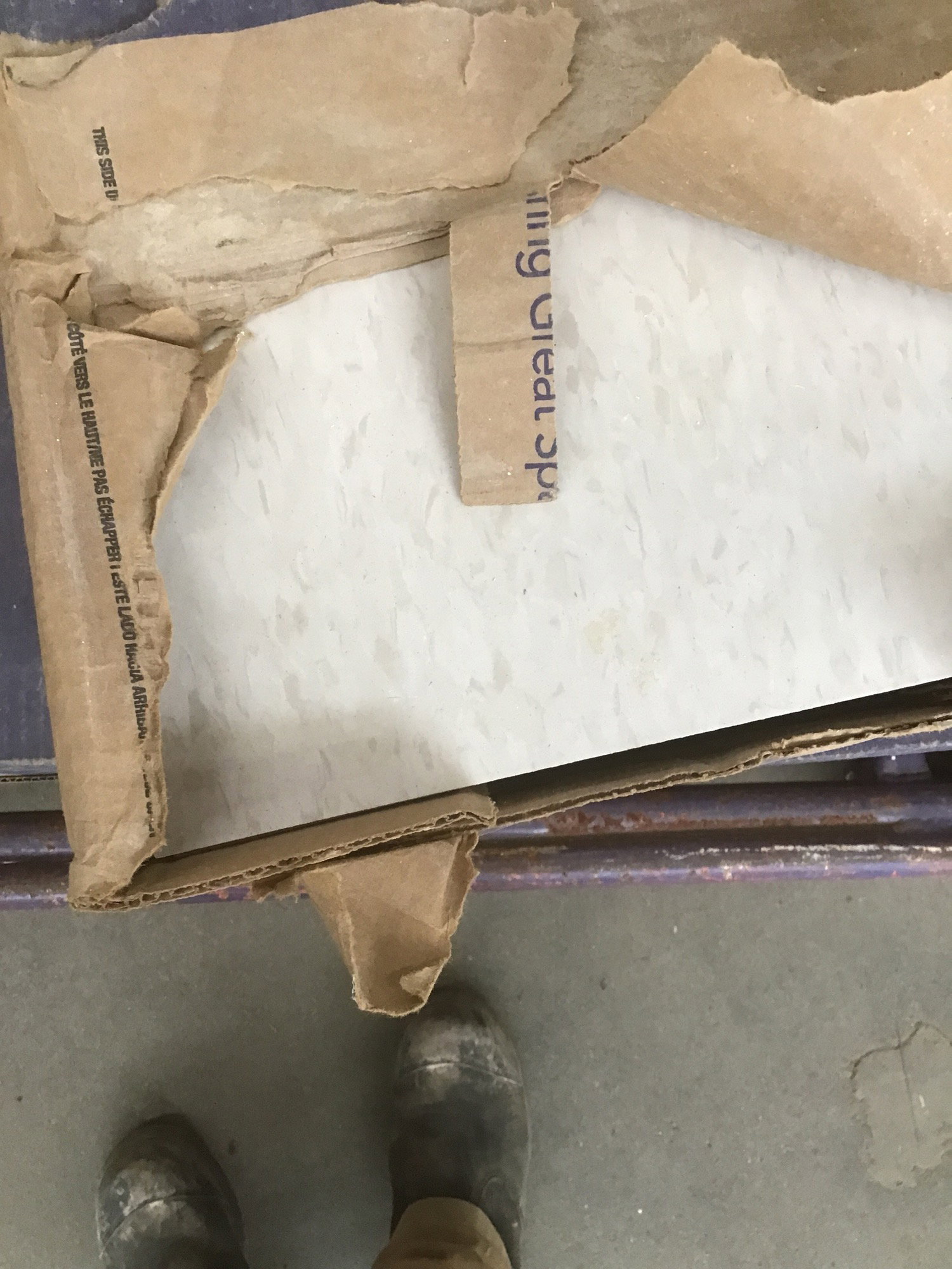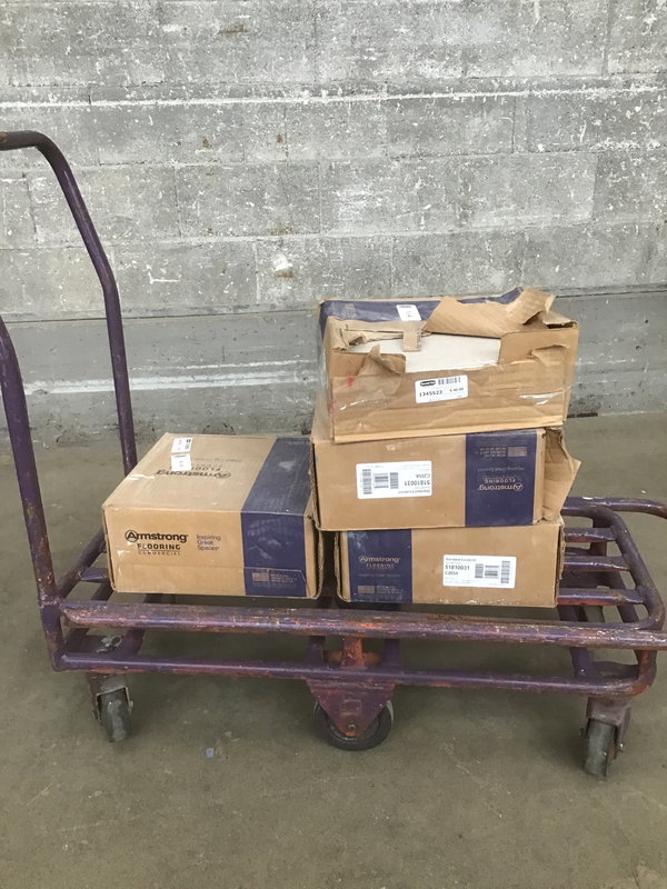 4 Boxes of Armstrong VCT that are 12x12 tiles. One of the boxes are opened.