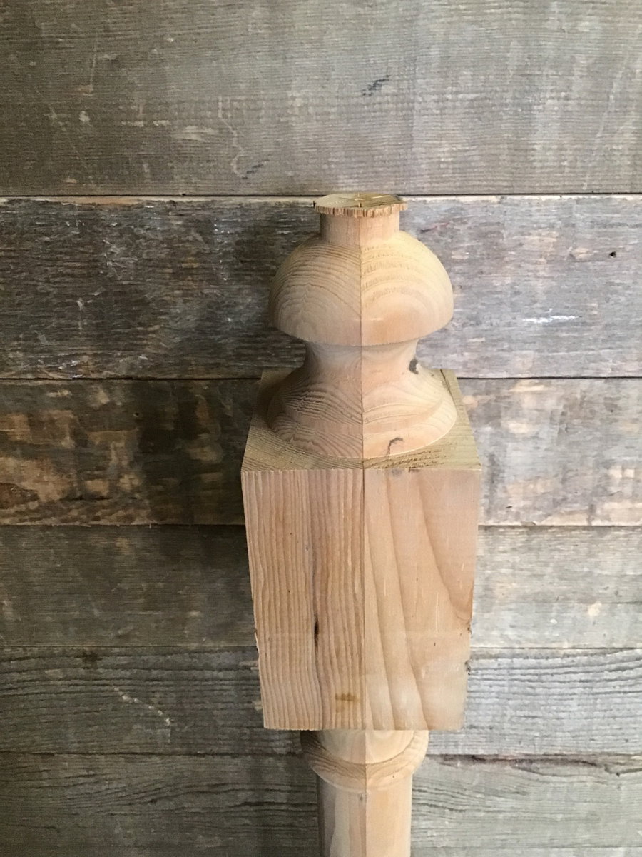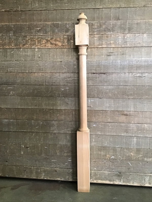 Hem/fir newell post. May have minor cosmetic damage or cracks.