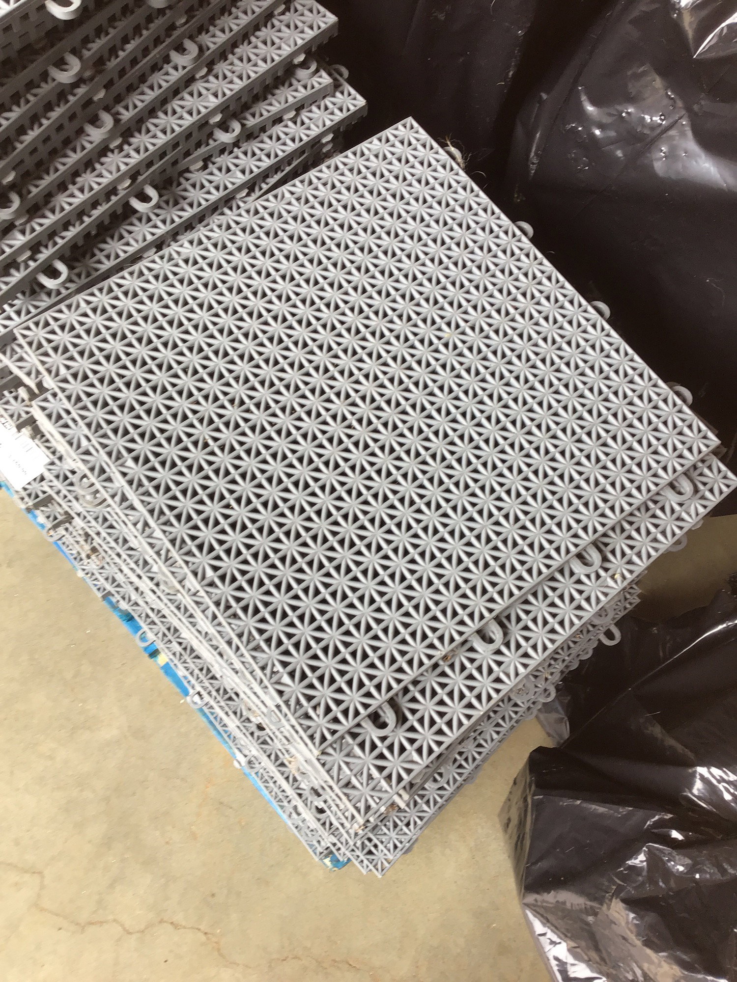 Supplier said this lot of plastic tile has been on their deck for the last ten years and covered 400 square feet. They said it's a little brittle and does get hot in the summer otherwise worked great. We're leaving most of it in the plastic bags it came in for ease of you taking it home. Let's figure the total usable square footage at 320 incase there's any damage or cut pieces.