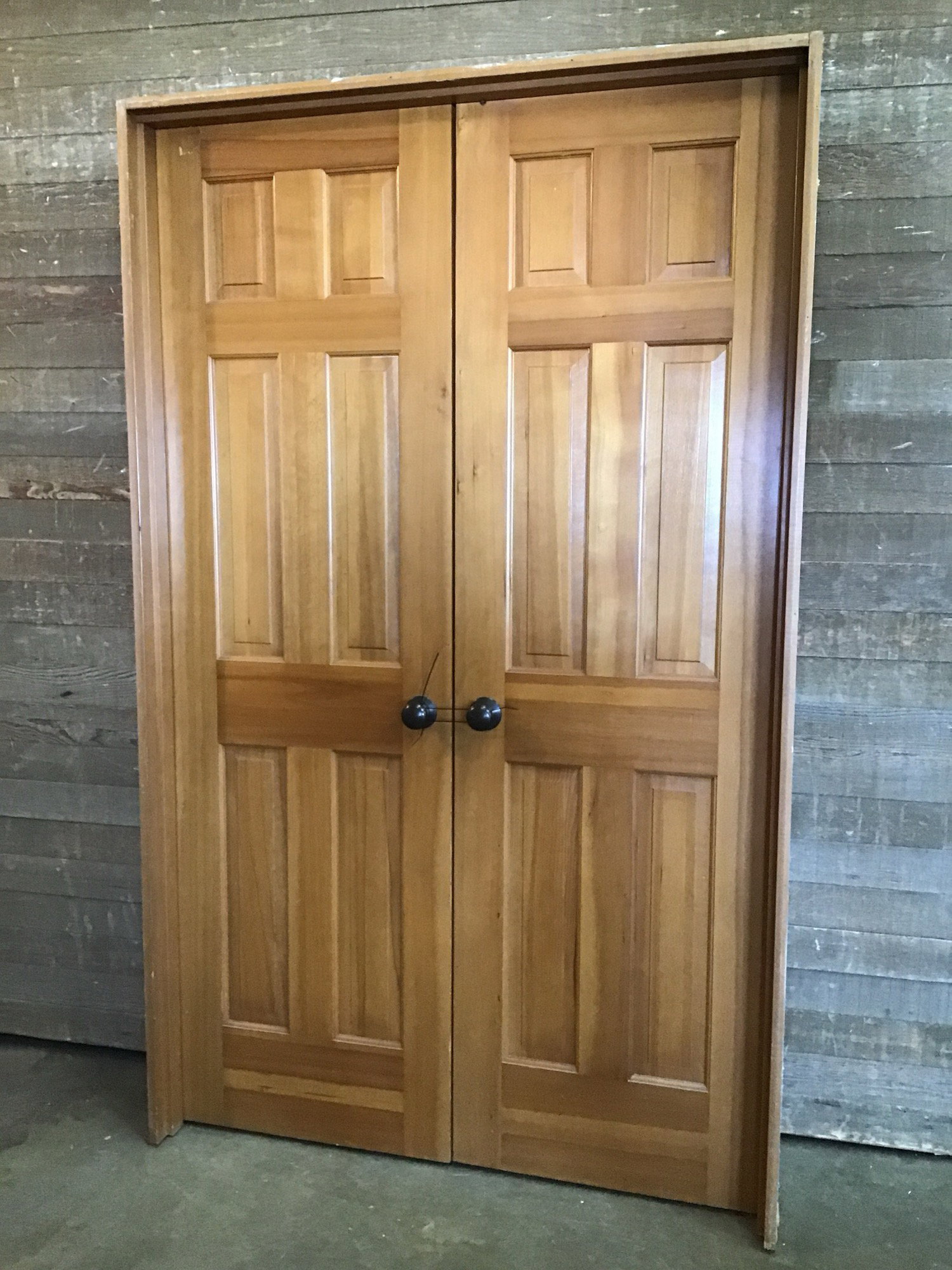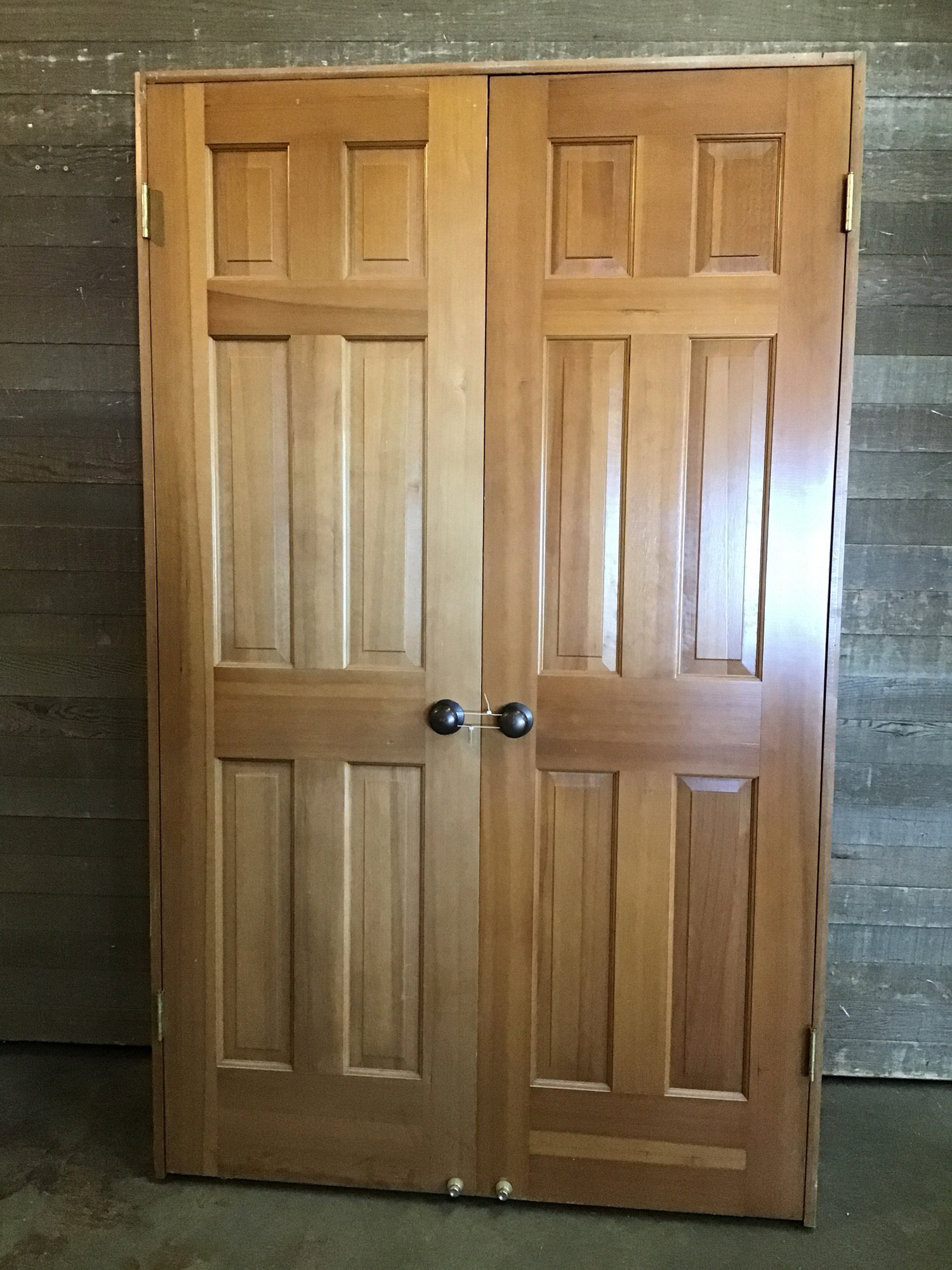 Beautiful CVG Fir, six panel interior double door in great shape and it's already in jamb and ready to go! Each door has oil rubbed bronze dummy knobs, so no latch hole in either. Will be a great addition for any room.