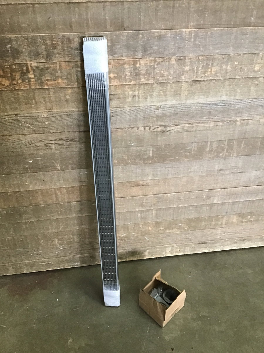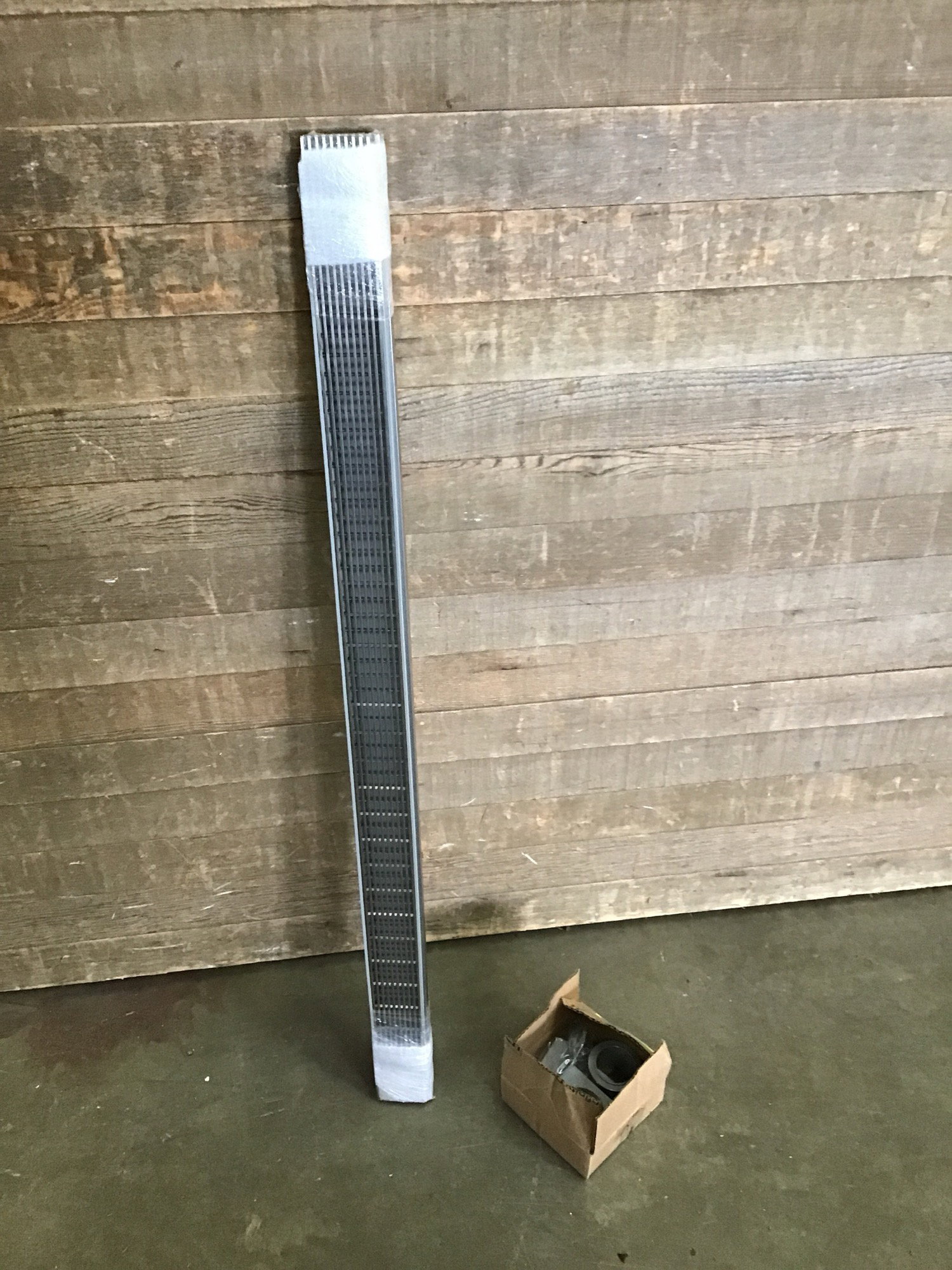 48" satin stainless steel Infinity Drain. This came to us new in a damaged box. 48"W x 3"D.