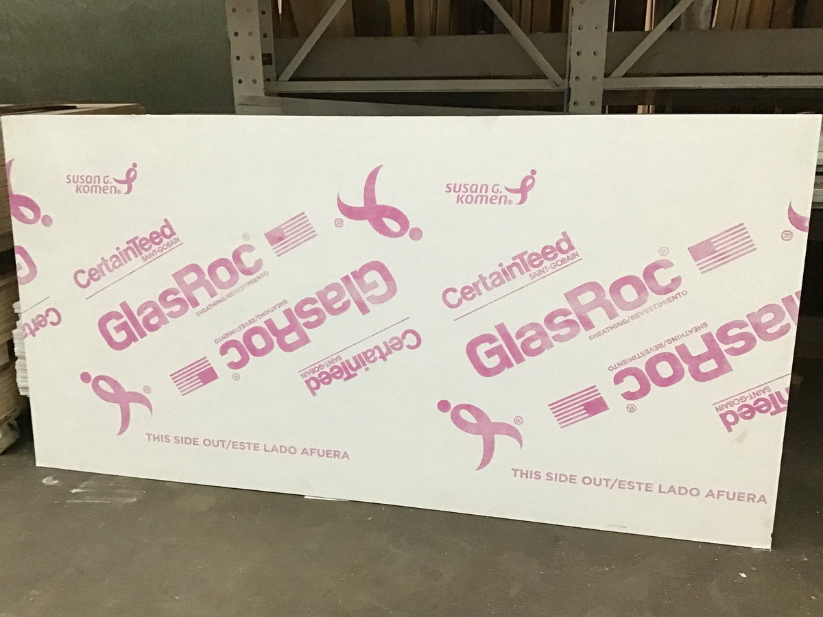 5/8"" 4'x8' GlassRoc gypsum board by CertainTeed. "CertainTeed GlasRoc is a high-performance, paperless, glass-mat sheathing and drywall panel engineered for superior moisture, mold, and fire resistance. It is used for exterior sheathing, soffits, and interior wet areas, providing a durable, lightweight, and eco-friendly (GREENGUARD Gold certified) solution that holds up to 12 months of weather exposure" Condition for each sheet varies with some minor corner damage here and there. Overall in good condition but hurry for the best selection. This is a bulk item. No holds please.