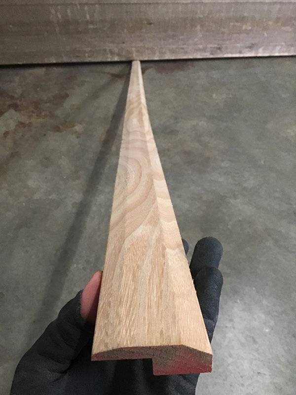 Unused/unfinished, 5/8" x 2" Red Elm chamfer edge threshold. 33 pieces that range from 7'-8'. Good for many doorway applications and for transitioning between floors of different heights.