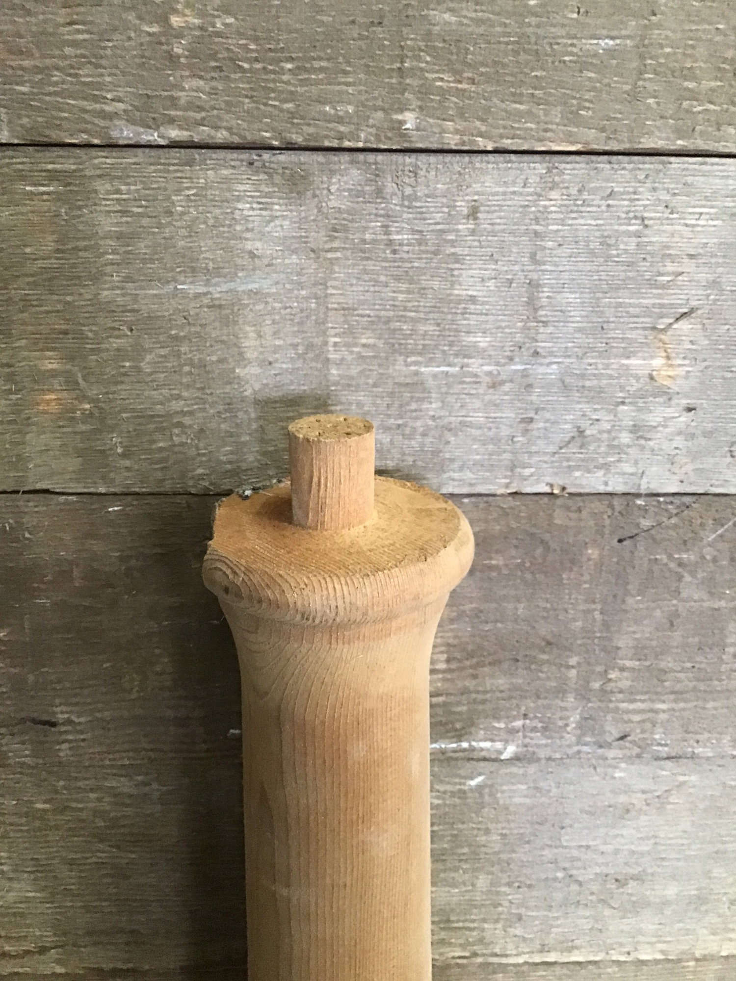 5' tall raw fir spindle. May have some minor cosmetic damage otherwise in good sturdy condition.