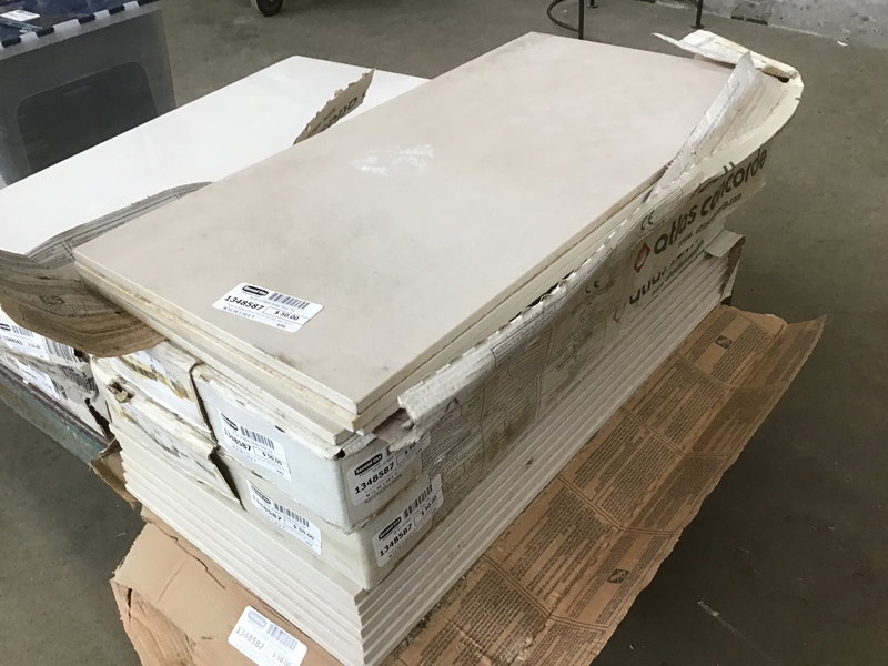Three full boxes of seven tiles per box (size listed) and four extras, Atlas Concorde "Boost Ivory" that looks to sell for about $9 per SF online.