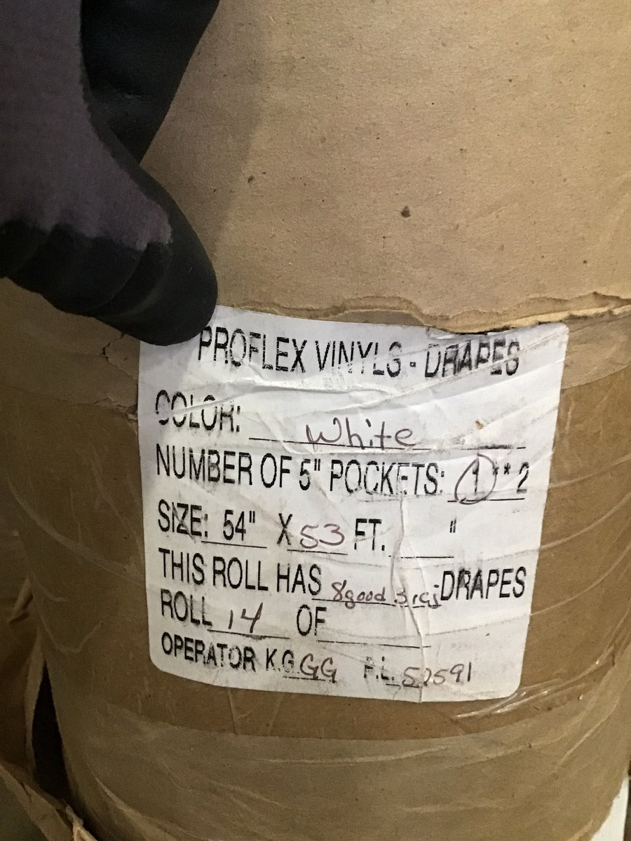 Big ol' roll of unused Proflex vinyl drape, 54" in width and 53' in length.