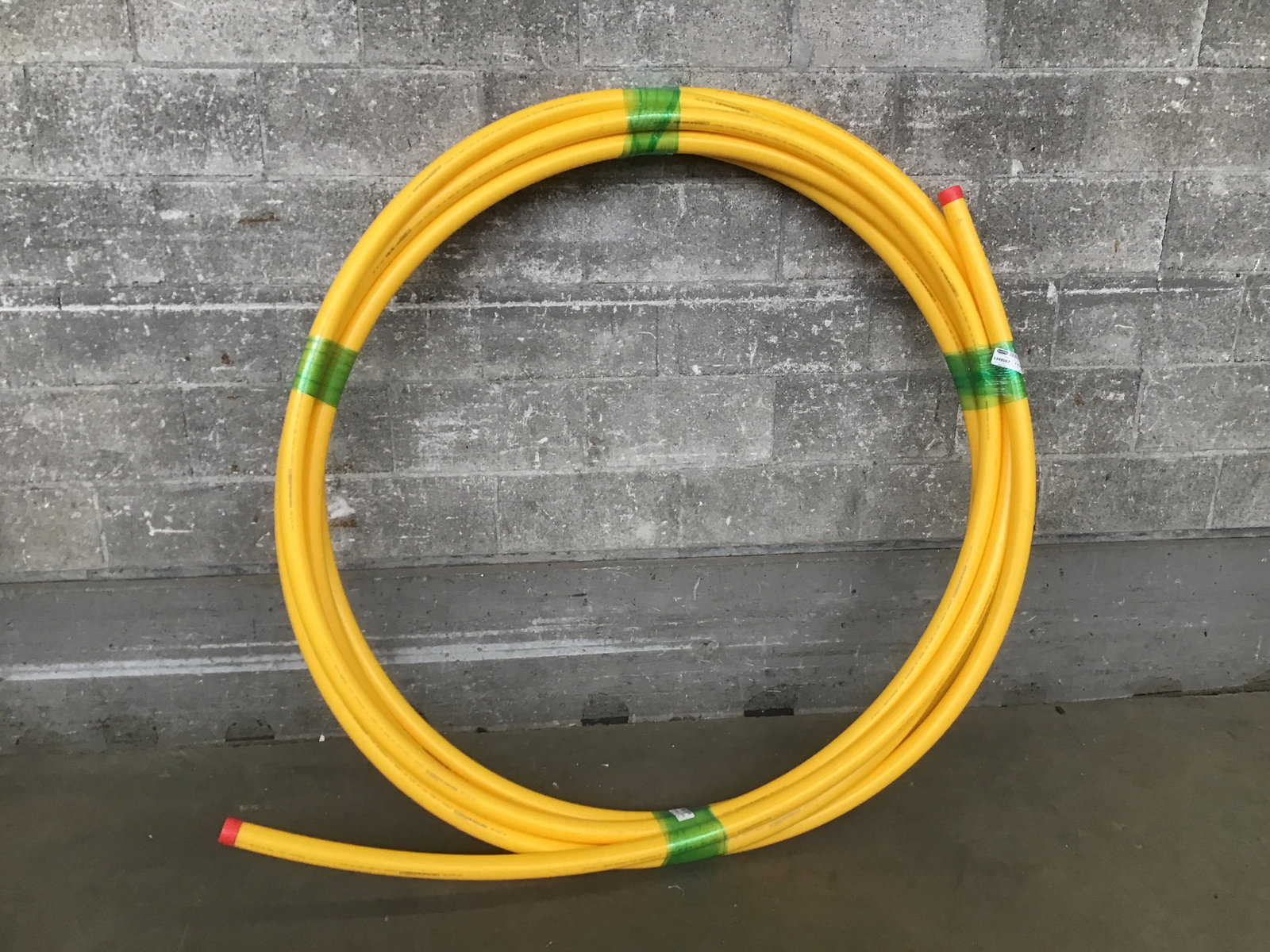 Approximately 65 feet of 1 1/4" Home-Flex underground yellow gas line that sells for $1.00 per foot at HD in a hundred foot roll.
