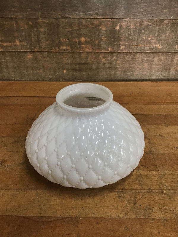 Vintage milk glass lamp shade with a beaded argyle pattern throughout.