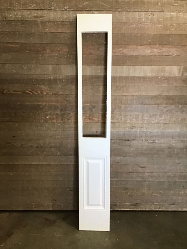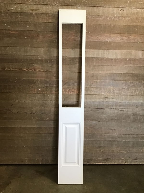 Never installed half lite style fiberglass sidelite with faux raised panel pattern missing its glass. Fit it with your own glass or plexi glass panes and get a nice sidelite for a great deal.