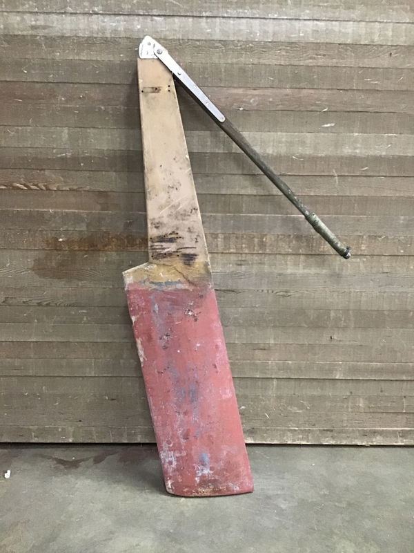 Cool looking vintage sailboat rudder. Weathered perfectly for a nautical themed garden setup. Would also make a cool wall prop or backdrop for a floating shelf build. A fantastic piece for a project.