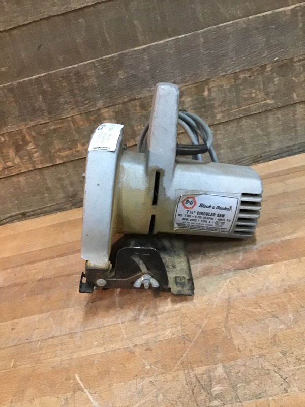 Black & decker 7 1/4" circular saw. 120v, 50/60hz, 9amps. Tested in house and appears functional.