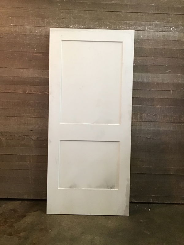 36" faux-panelled solid core door. No hinge or bore cuts. Item has some minor water damage (price reflects) otherwise in good sturdy condition.