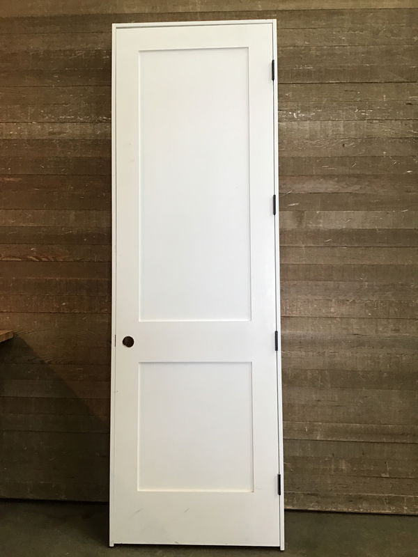 Oversized pre-hung, primed 2-panel interior door. Left hand swing. Minor cosmetic dings and scuffs otherwise in very good condition!
