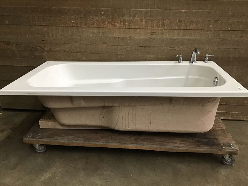 Fiberglass drop-in soaker tub in pretty good shape. Has some scratches but no major cosmetic imperfections inside the tub.