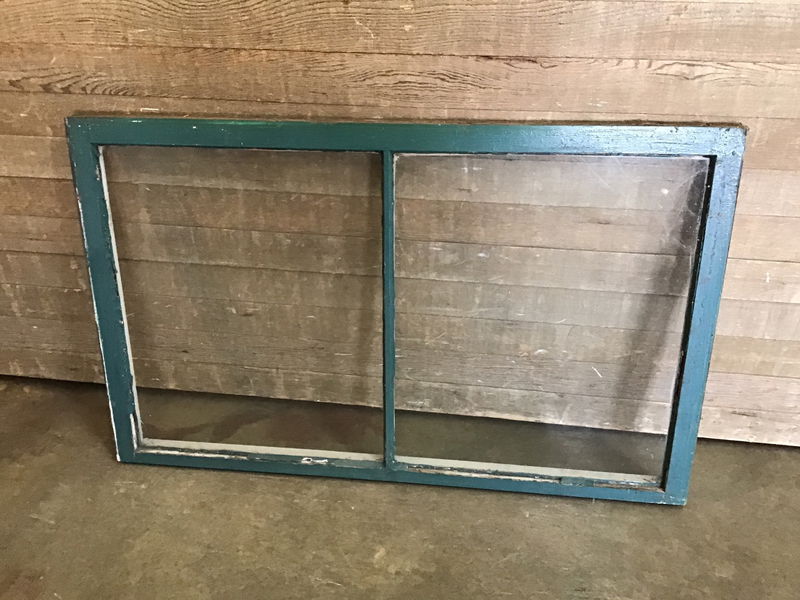 Vintage wood window sash in good condition, two panes are beautifully wavy. Painted white on one side and green on the other. These make great DIY green houses or hanging partitions.