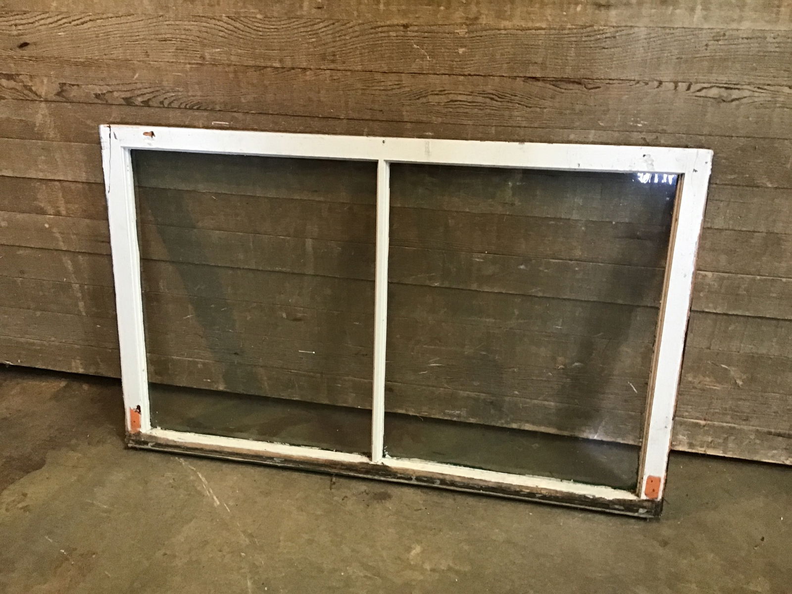Vintage wood window sash in fair condition. Painted white on one side and green on the other. These make great DIY green houses or hanging partitions.