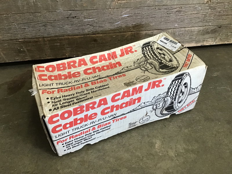 Cobra Cam Jr cable chain set for light duty trucks with radial biased tires. Appear to have never been used.