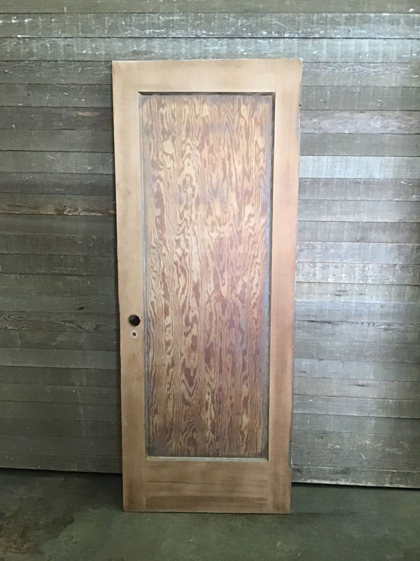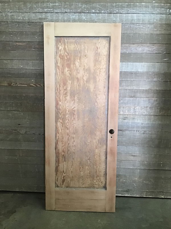 Single panel fir interior door. Looks like an old door but has been sand blasted and doesn't have too much damage besides some bumps and a chips on the side corners.
