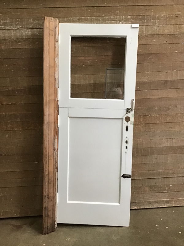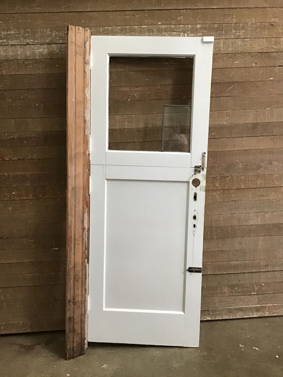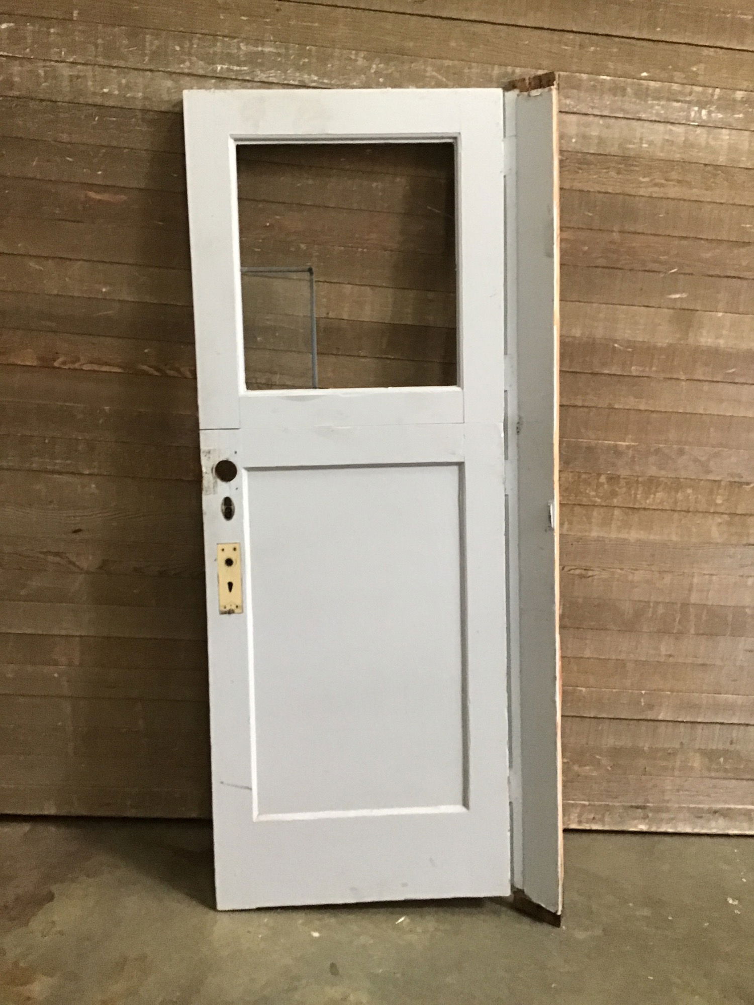 Vintage dutch door, previously had leaded glass top light but shattered while moving it around. Replace it with some plexiglass for a quick and durable solution.