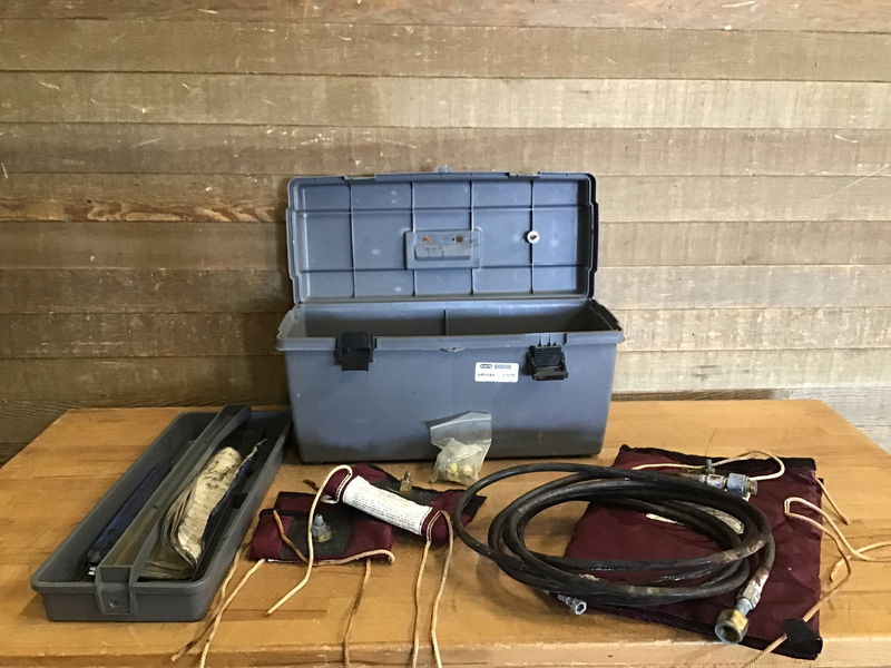 For shutting off liquid flow through pipes. There seems to be 4 sleeve bags and a tube. Nipples and fittings have quite a bit of corrosion but shouldn't impede function after a pass with steel wool.