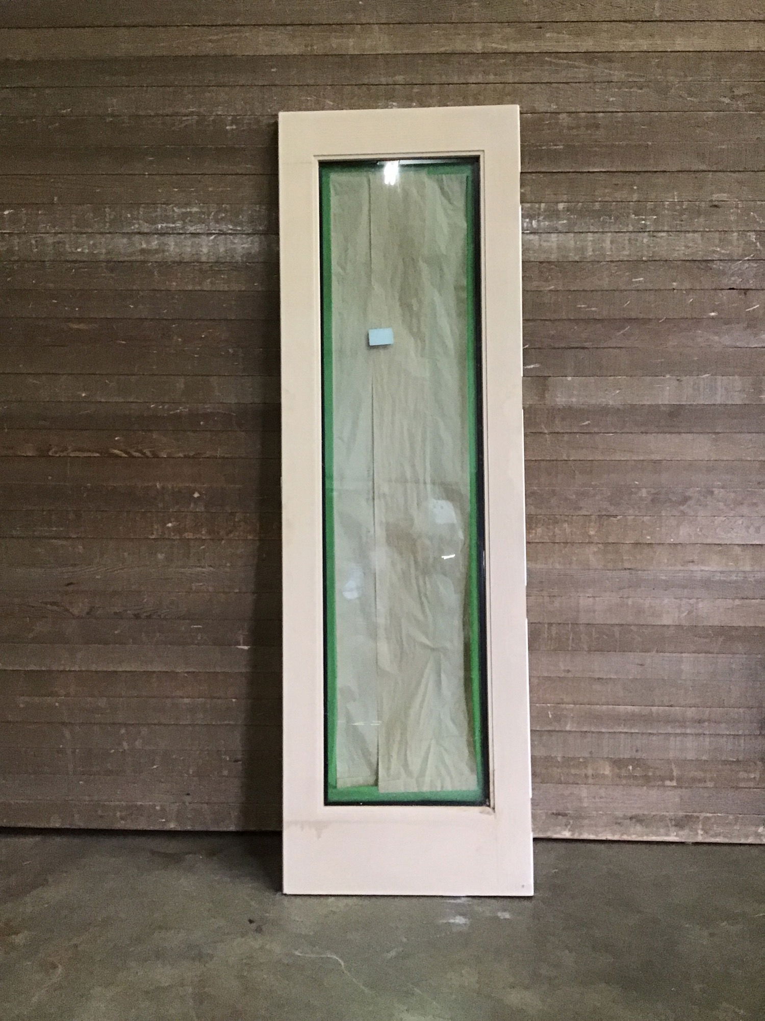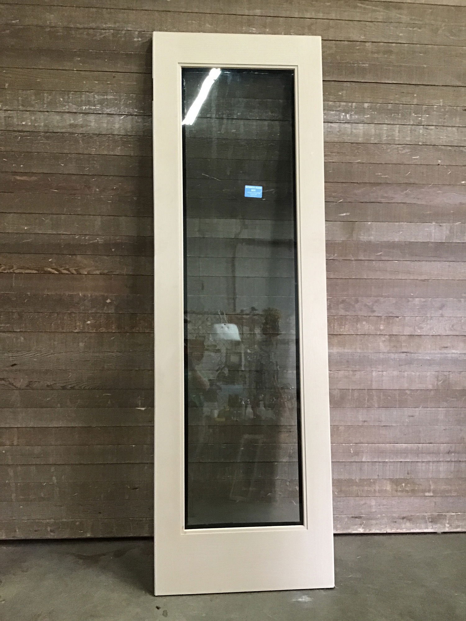 Fiberglass clad oversize door with an oak pattern and thermopane glass. Has weirdly positioned hinge cutouts, so will need them cut. Never installed and in good shape.