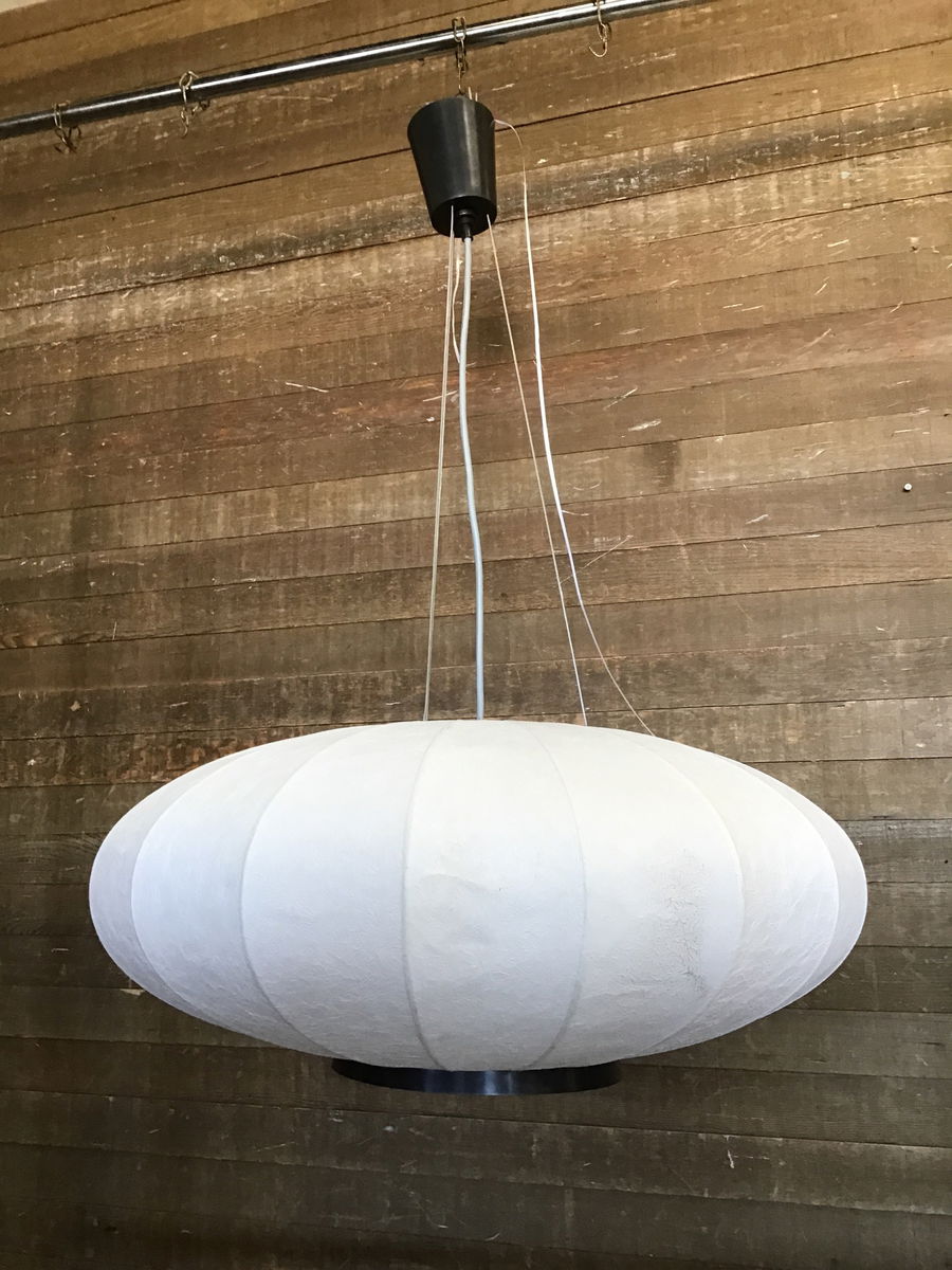 Designed by Barbara Barry for Visual Comfort Signature. "The Paper Moon Pendant gives off a sense of serenity through its light, airy lantern design. Whether hung in an entryway or over a dining table, it creates a warm, welcoming environment as light shines through the generously sized round paper shade." Retails for $2600, details here Has a slight dent in the paper in one spot, otherwise in great shape.