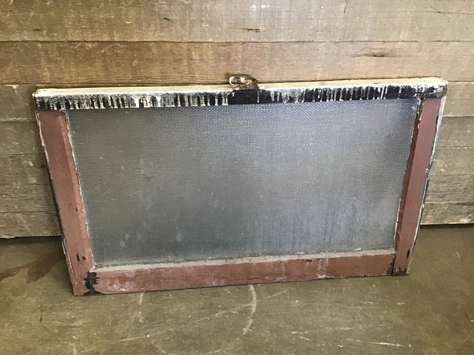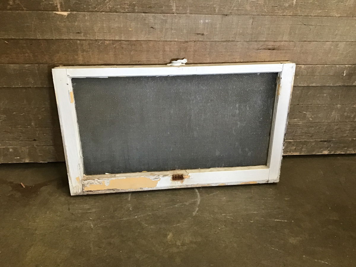 Vintage wood window sash with a single pane of textured obscure glass. Painted on both sides.