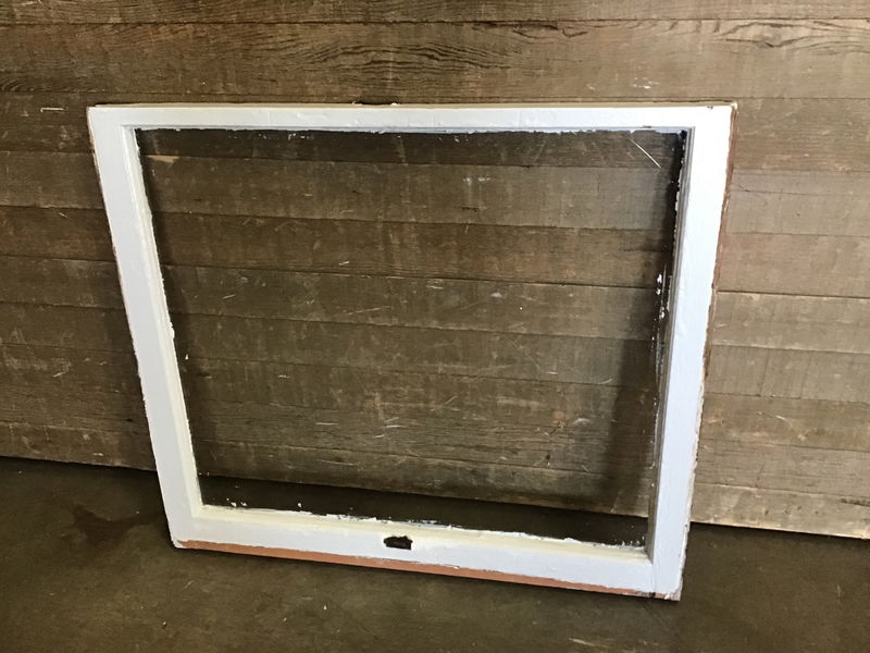 Vintage wood window sash with very wavy glass. Unfortunately it is cracked in a corner, price reflects.