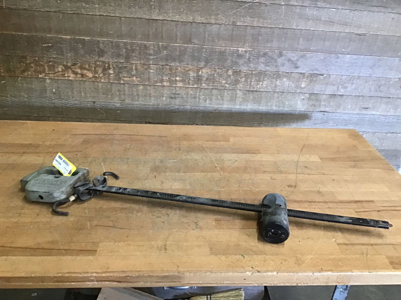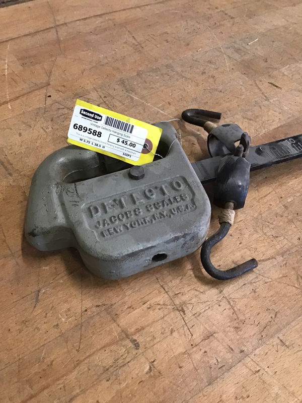 This is a vintage Detecto brand hanging scale with a maximum weight capacity of 200 Ibs. It's dated from the 1950s, is still in great condition, and is a really cool piece of industrial history from a brand that has long since changed. This comes from Tacoma's own Willits Brothers Canoe Co. Makers of a highly sought after "double planked" canoe design that was constructed until the mid 60s. Very cool piece of Pierce County industrial, and canoe building history. Now ready to help bend some wood planks or even composite decking material. Learn more about it here! Please note that several Willits experts reviewed the material as items from the workshop that were not critical to telling the story of the Willits Brothers (hence why we have it and not the museum). Most of their collection is in the museum's property now.