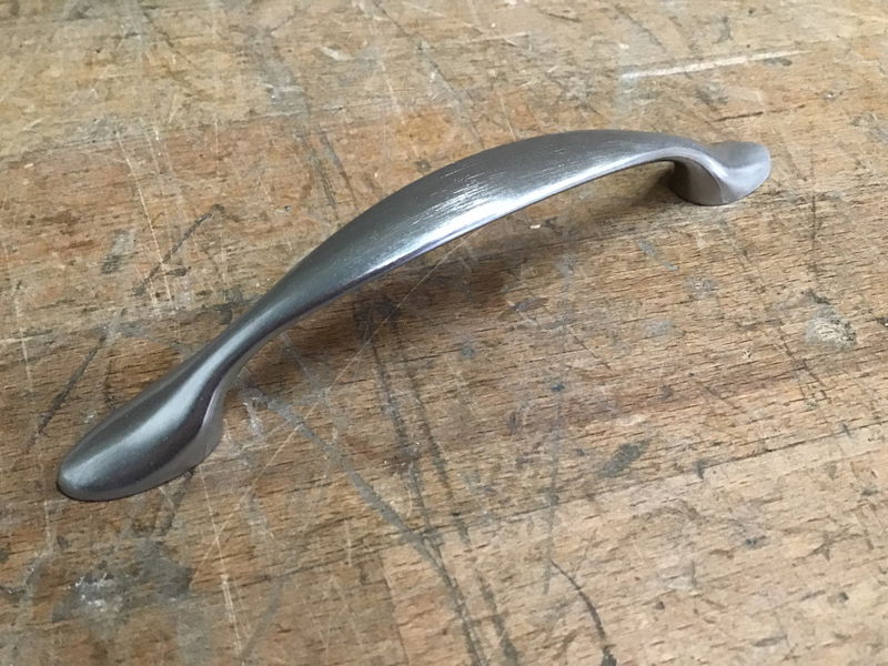 Modern style cabinet pulls by Laurey hardware still in packaging with a satin nickel finish and high density zinc construction. Great for revamping a cabinet. Photo may be representational.