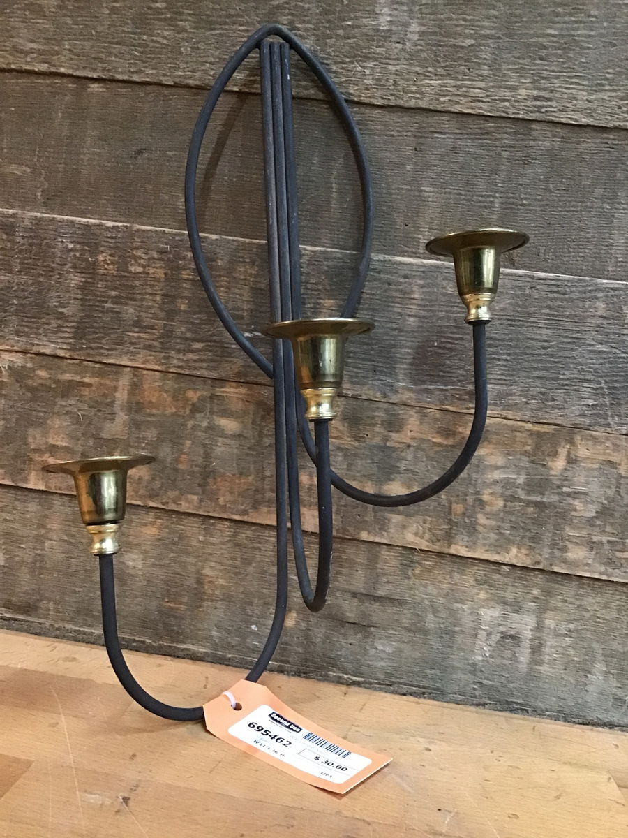 Cute little iron and brass wall candle sconce.