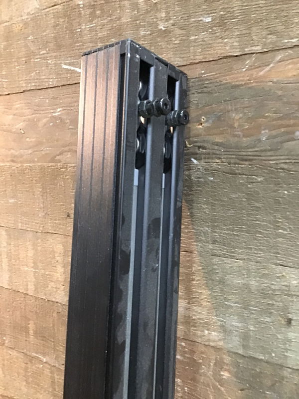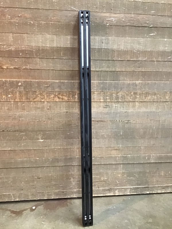 Heavy duty looking double door hanging track. Installation guide can be found here. May not have all parts for attaching doors to track.