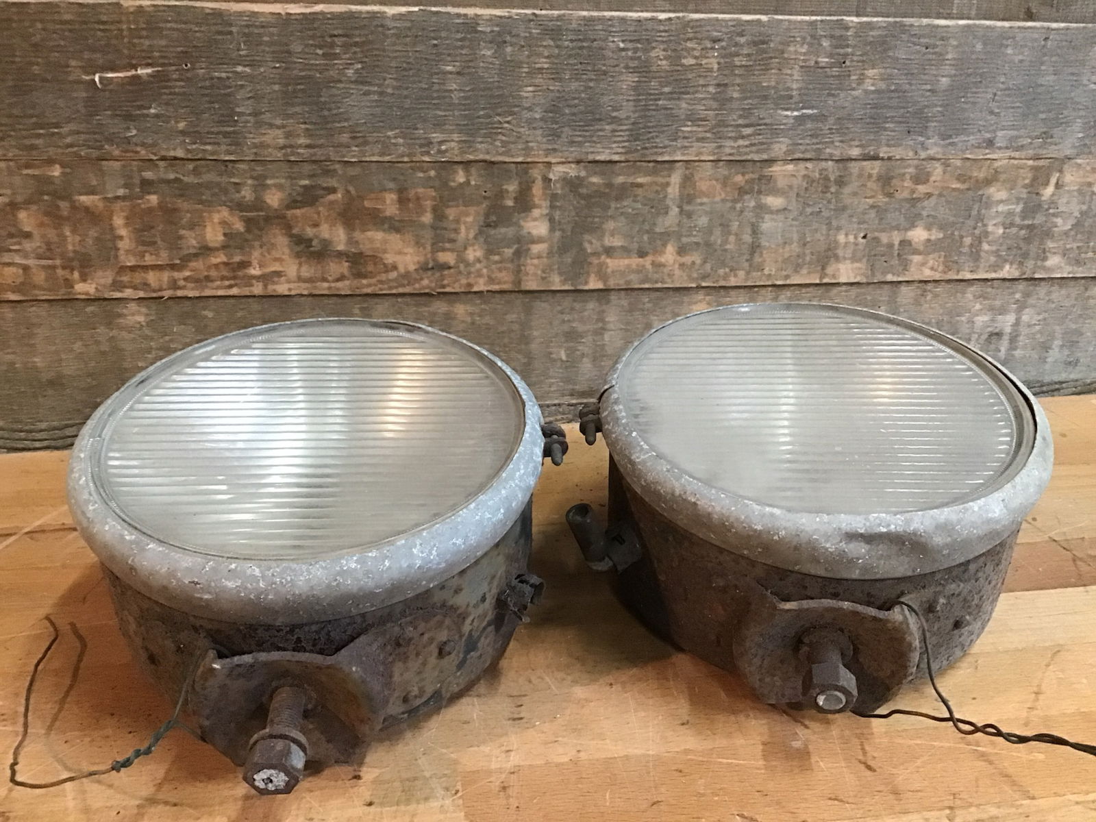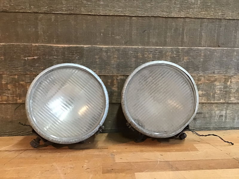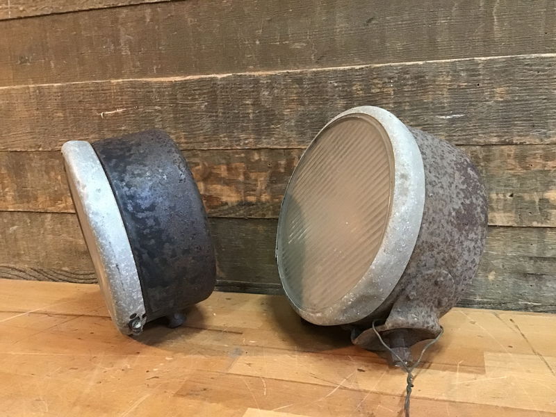 Vintage pair of drum headlights. Appear to be from the 1920's. Restore or attain classic auto vibes.